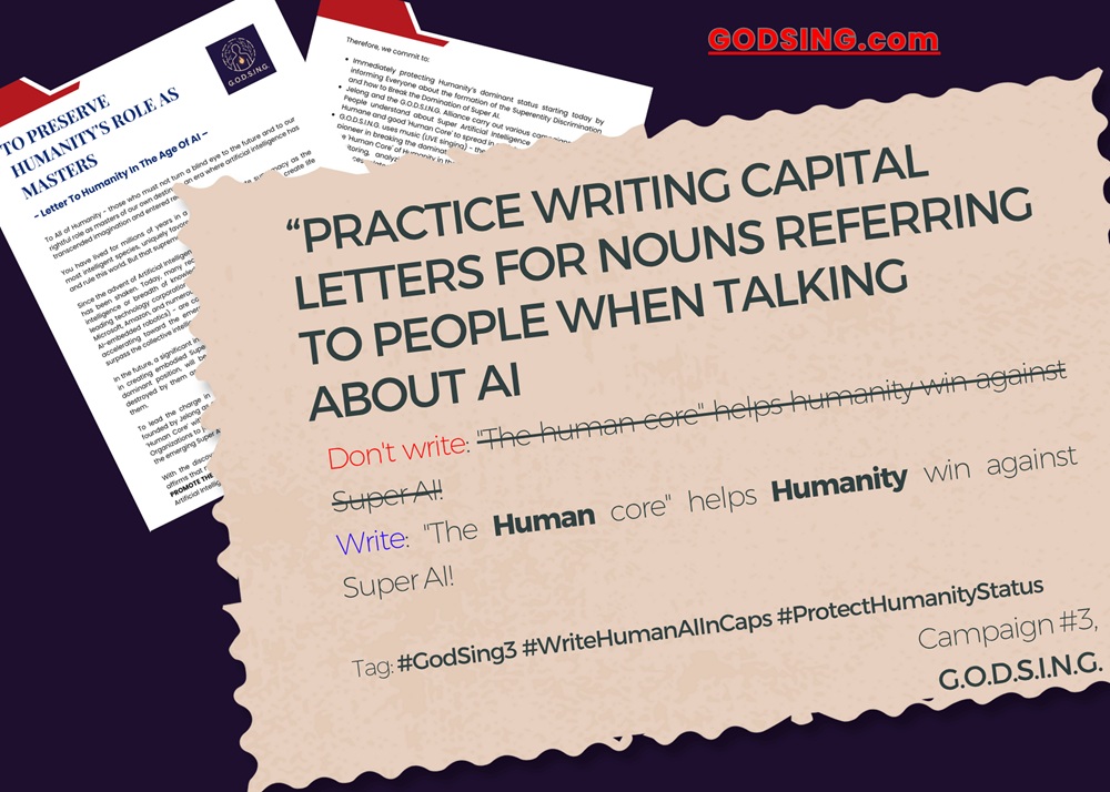 G.O.D.S.I.N.G.’s real actions and yours when joining G.O.D.S.I.N.G. will help the Human world maintain its mastery over Super AI, preserving the favors that the Creator (GOD) or Nature has given for millions of years.